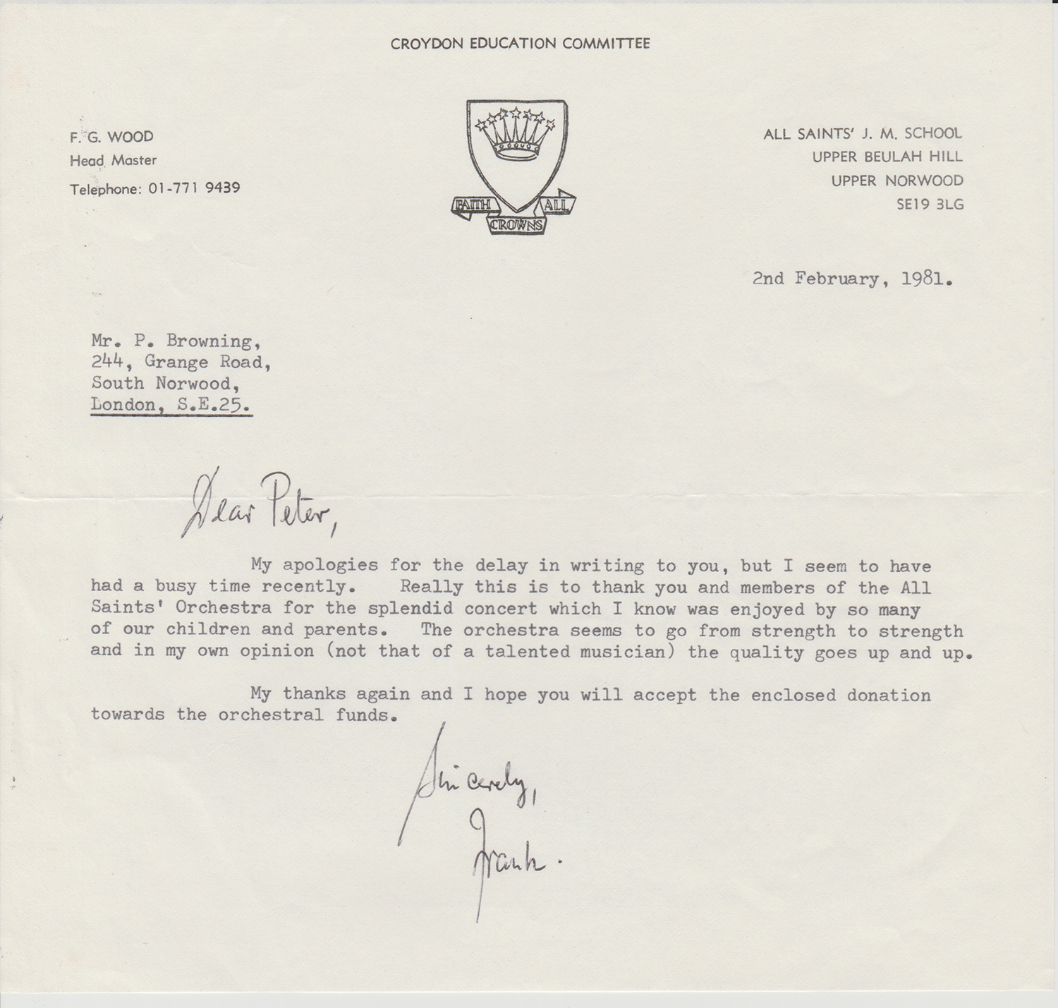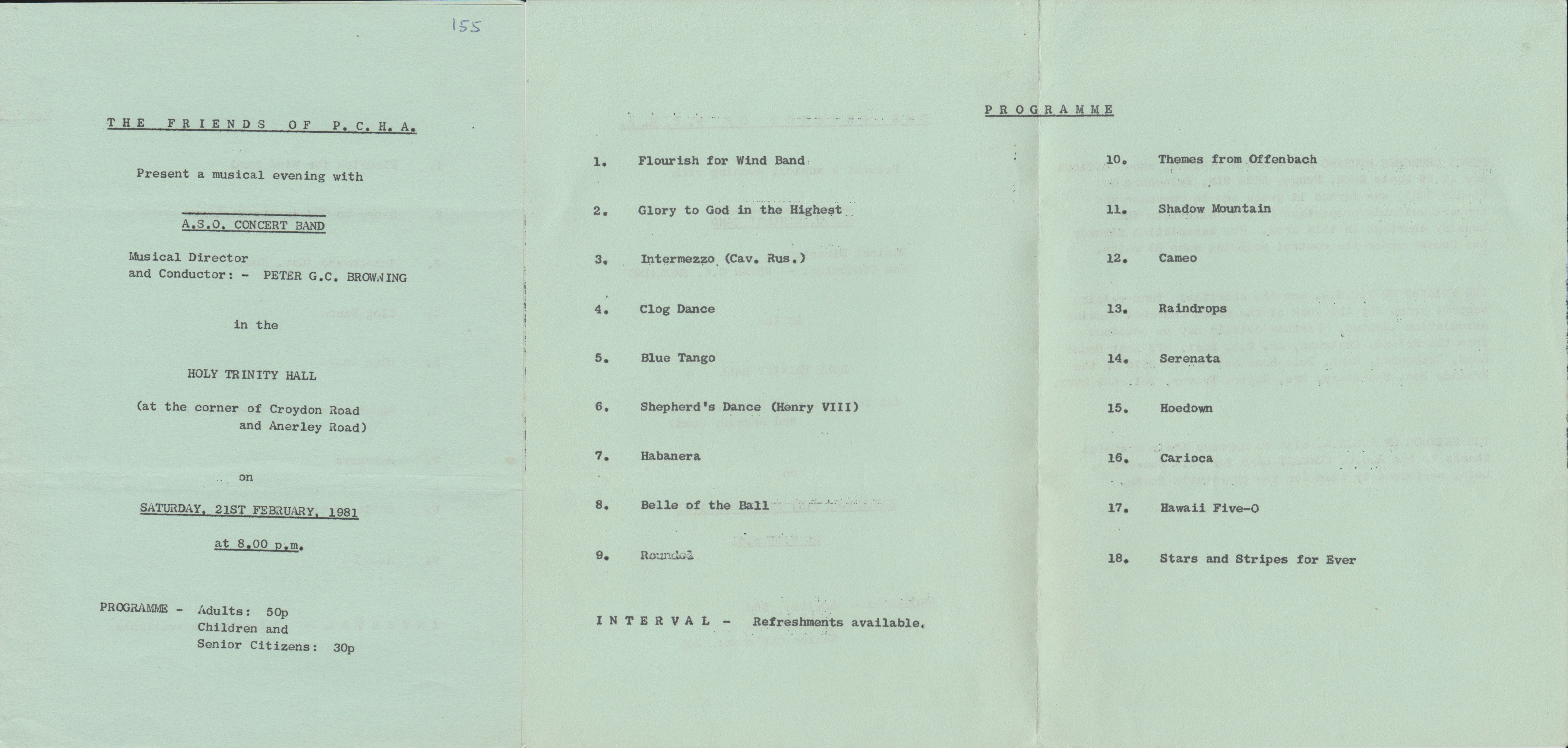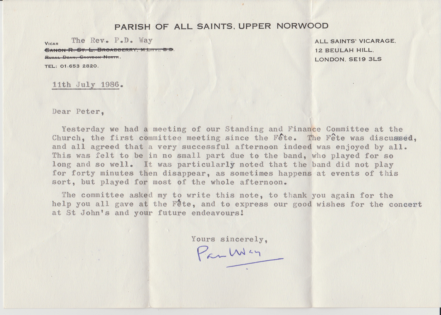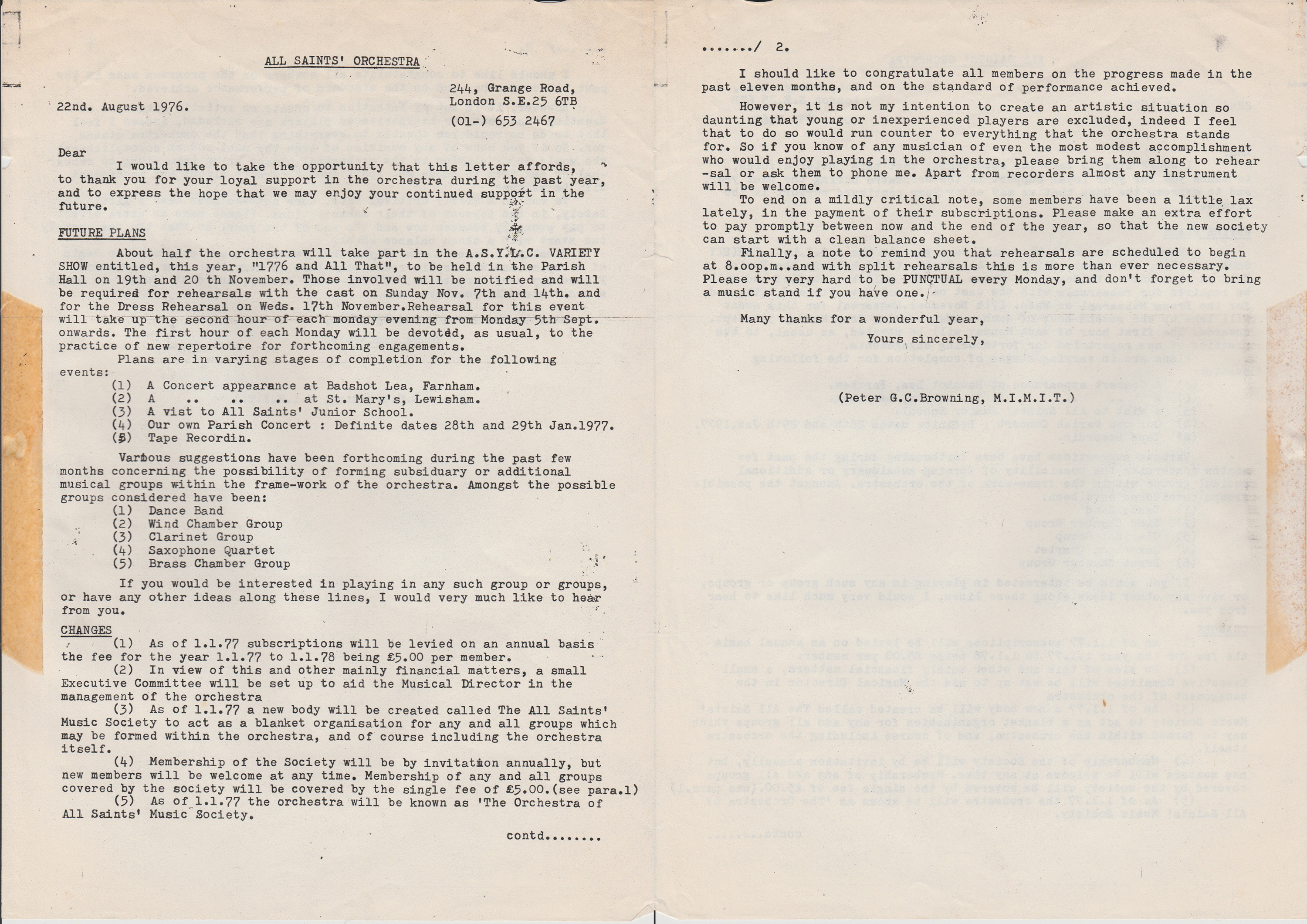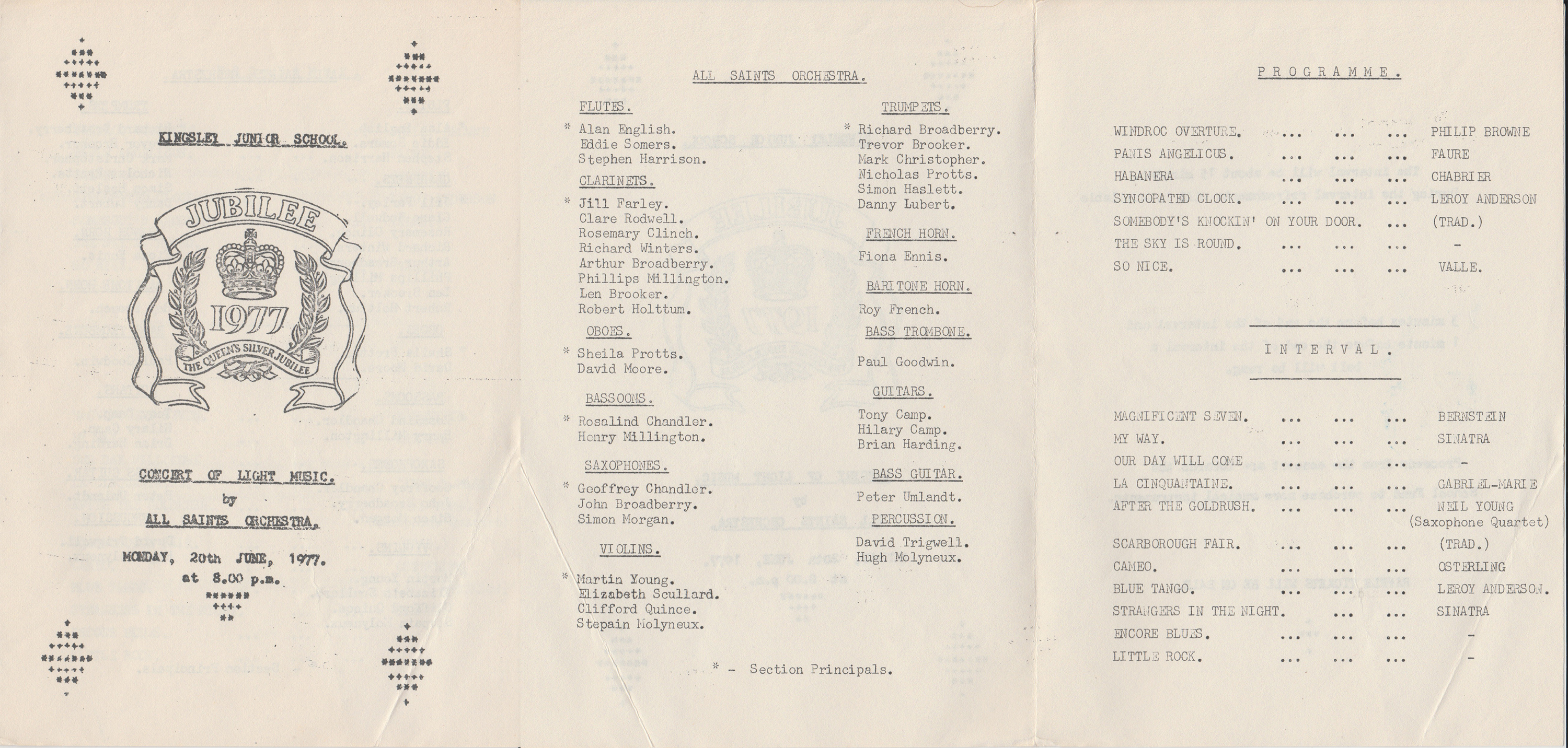 All Saints Concert Band was founded in 1975, and amazingly we still have some of those founding and early members with the band! Here is a collection of articles, letters, programmes, and other ephemera that we’ve collected over the many wonderful years.