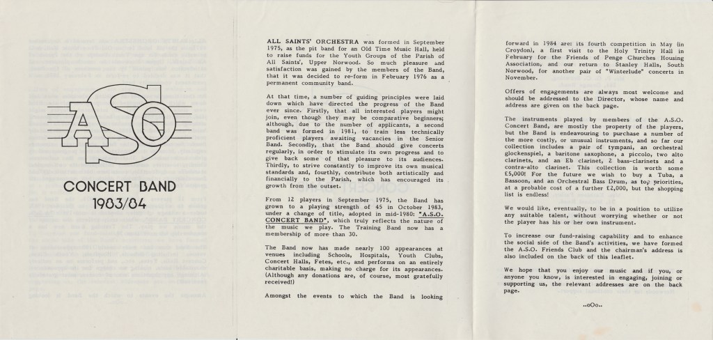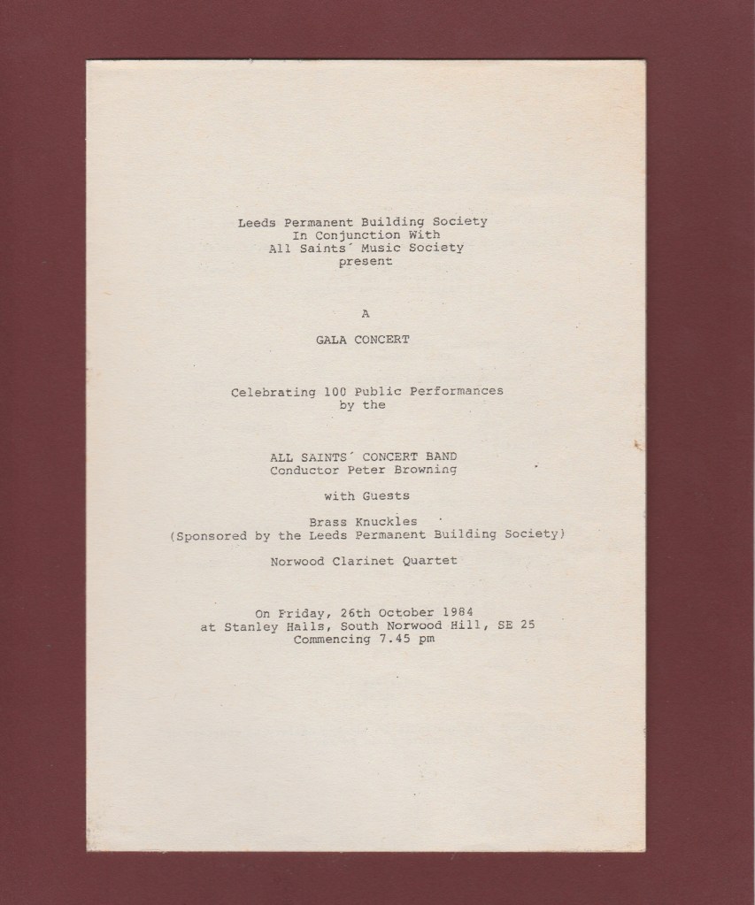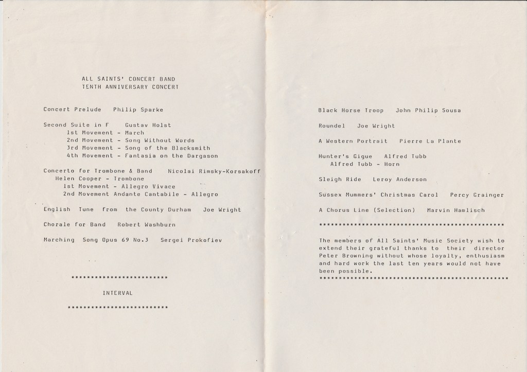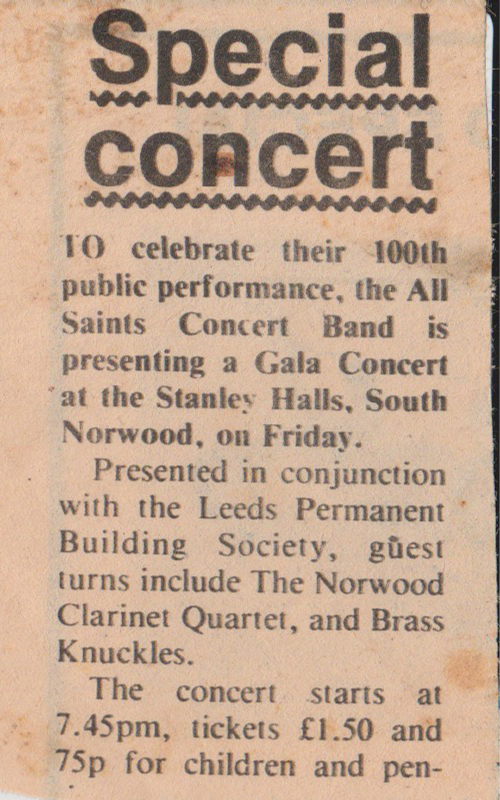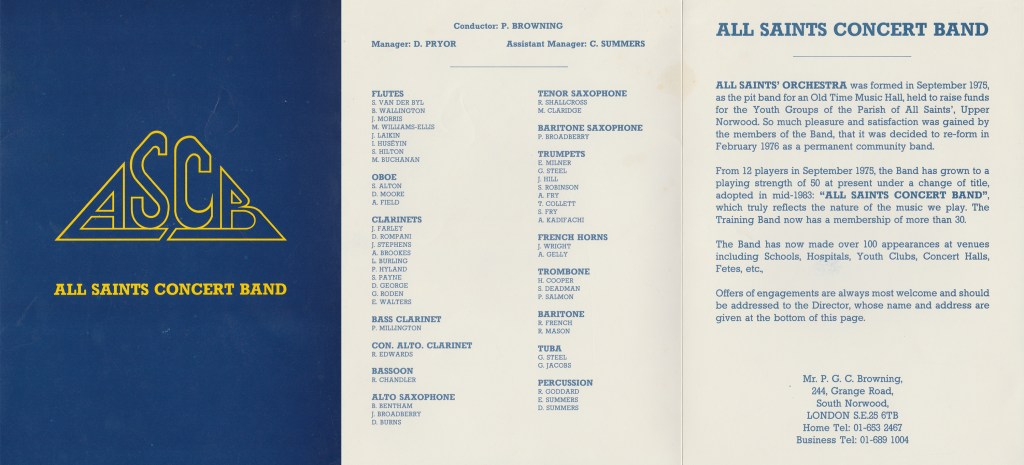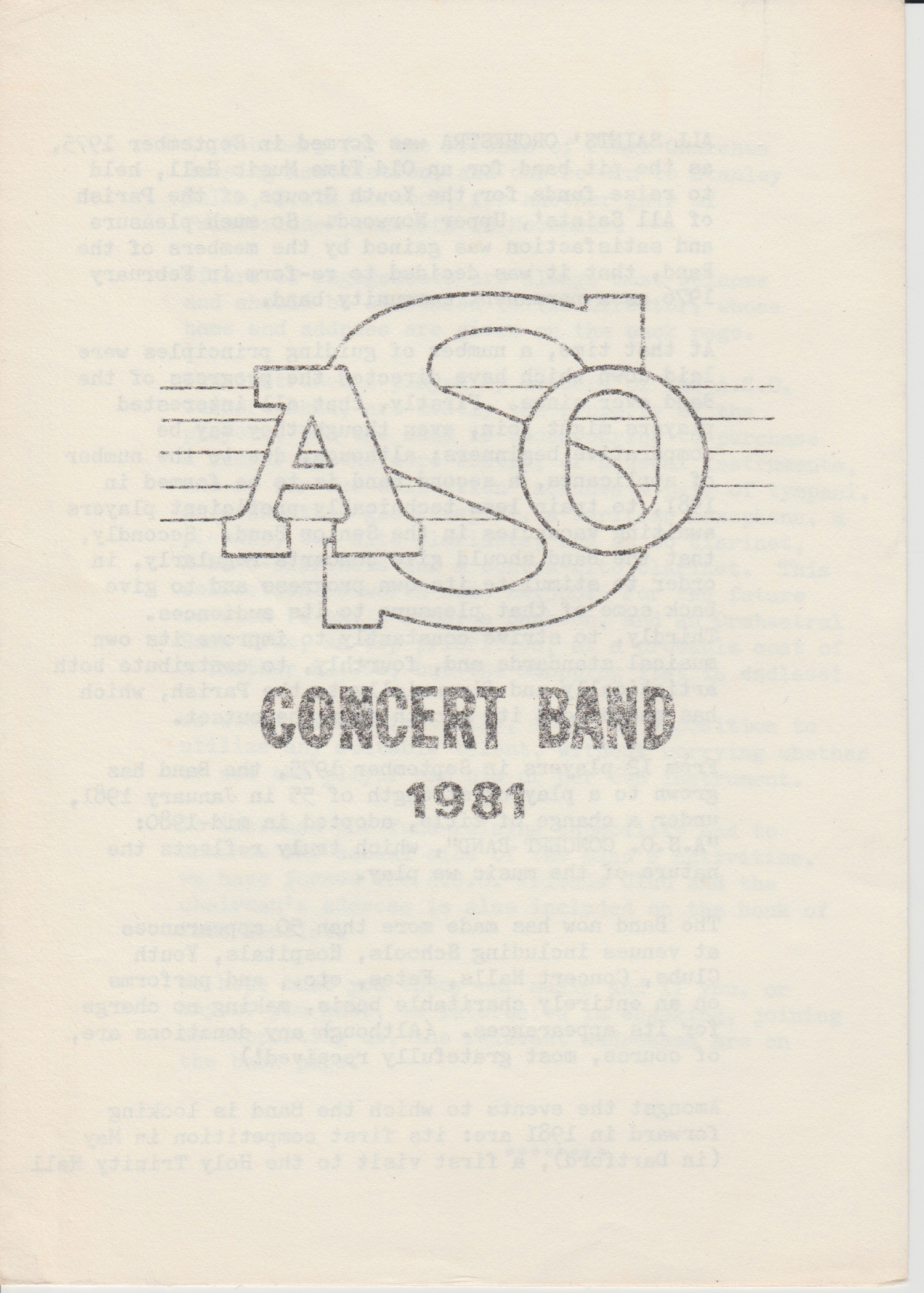All Saints Concert Band was founded in 1975, and amazingly we still have some of those founding and early members with the band! Here is a collection of articles, letters, programmes, and other ephemera that we’ve collected over the many wonderful years.