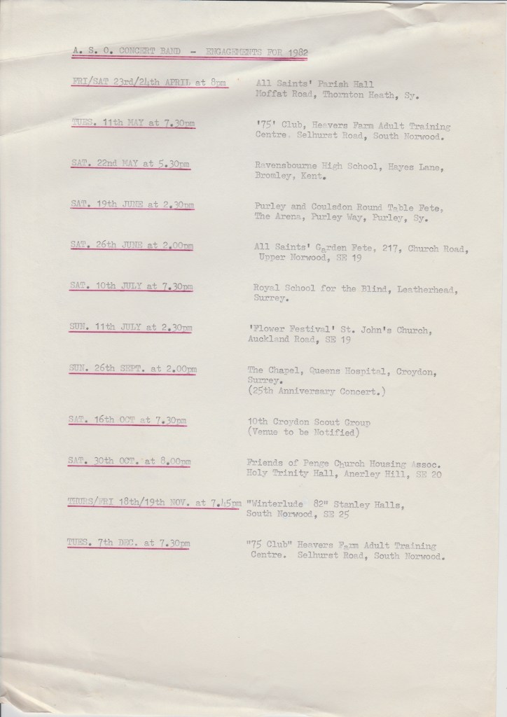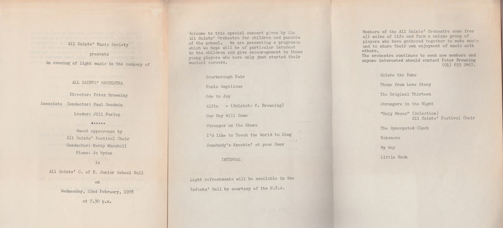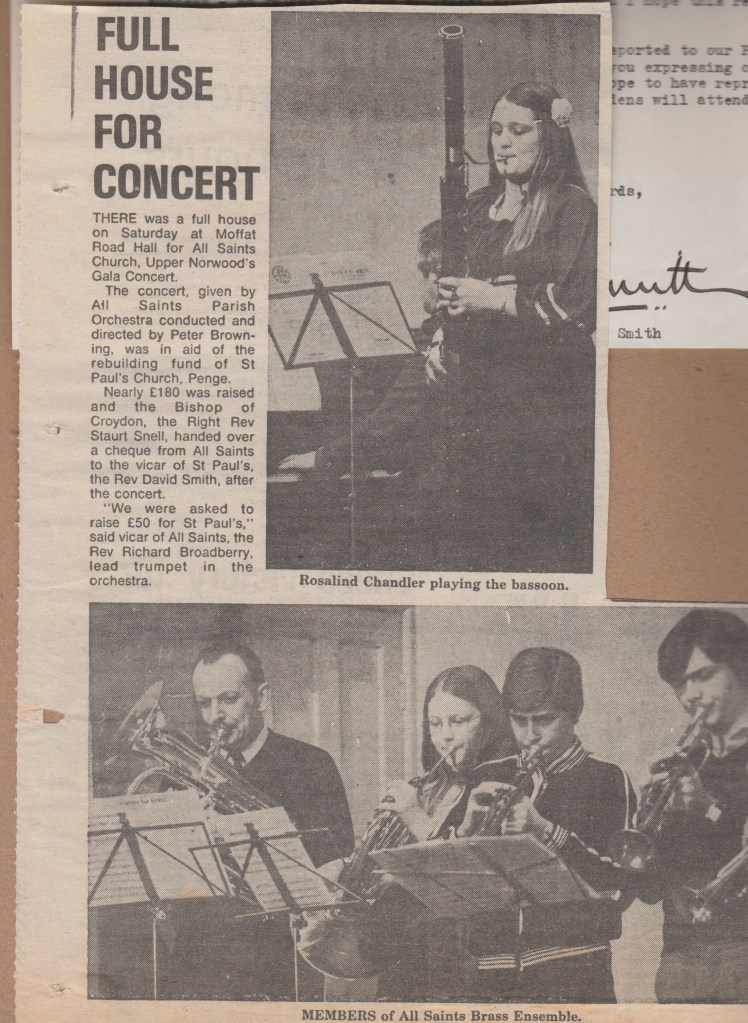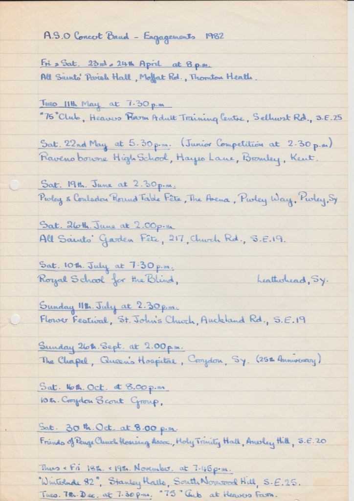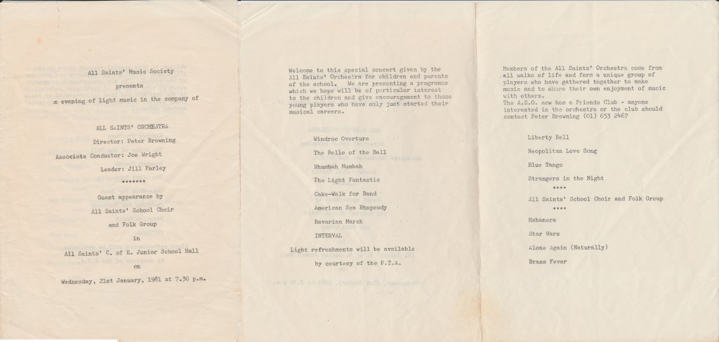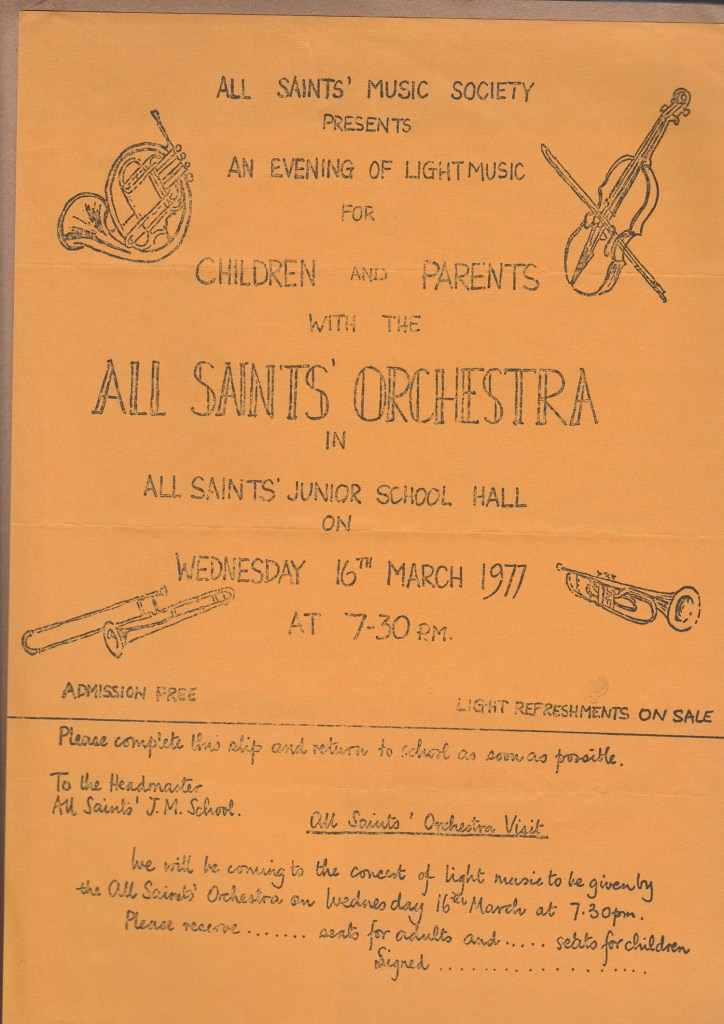 All Saints Concert Band was founded in 1975, and amazingly we still have some of those founding and early members with the band! Here is a collection of articles, letters, programmes, and other ephemera that we’ve collected over the many wonderful years.